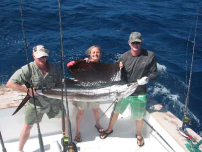 The OBSESSION provides all bait and tackle. We use Shimano TLD 20's with 25 lb line on light action stand-up trolling rods. We encourage angler participation and enthusiastically work with everyone interested in hooking their own fish. We use exclusively circle hooks to reduce injury to the sailfish. We will leave the dock at 6:30 AM and return around sunset (5 PM). We provide lunch, including sandwiches, munchies, fruit, yogurt, and drinks including a case each of water, soda and cervezas! All you need bring is polarized sunglasses, sunscreen, rubber soled shoes, hat, camera, and good luck!